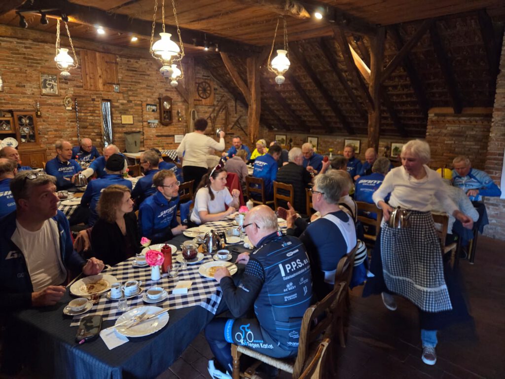 Auf je einer 60 km und einer 80 km Runde ging es in zwei Gruppen über die „Bergwertung“ in Surwold und bei leichtem Gegenwind über Sögel durch den Hümmling nach Stavern. Nach einer kurzen Pause ging es von dort mit Rückwind zurück zum Papenbörger Hus. Dort gab es im Anschluss Tee und Pfannkuchen satt.